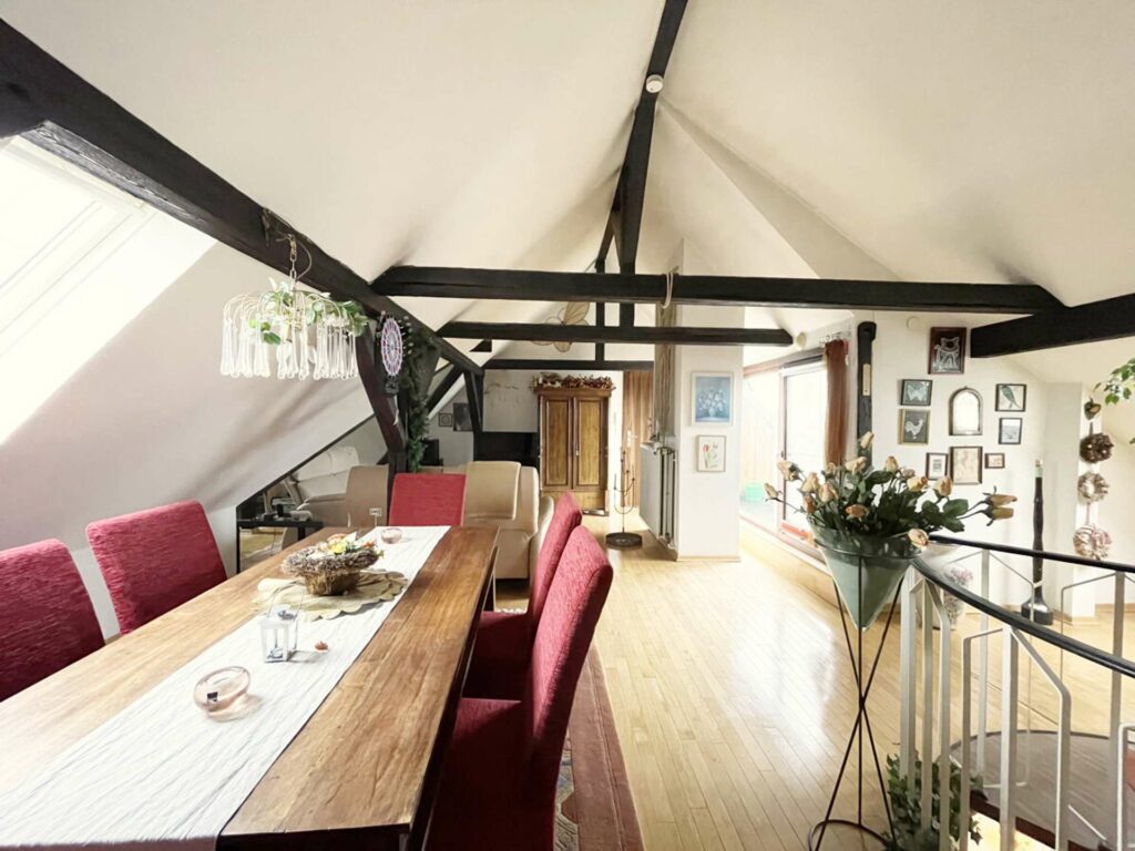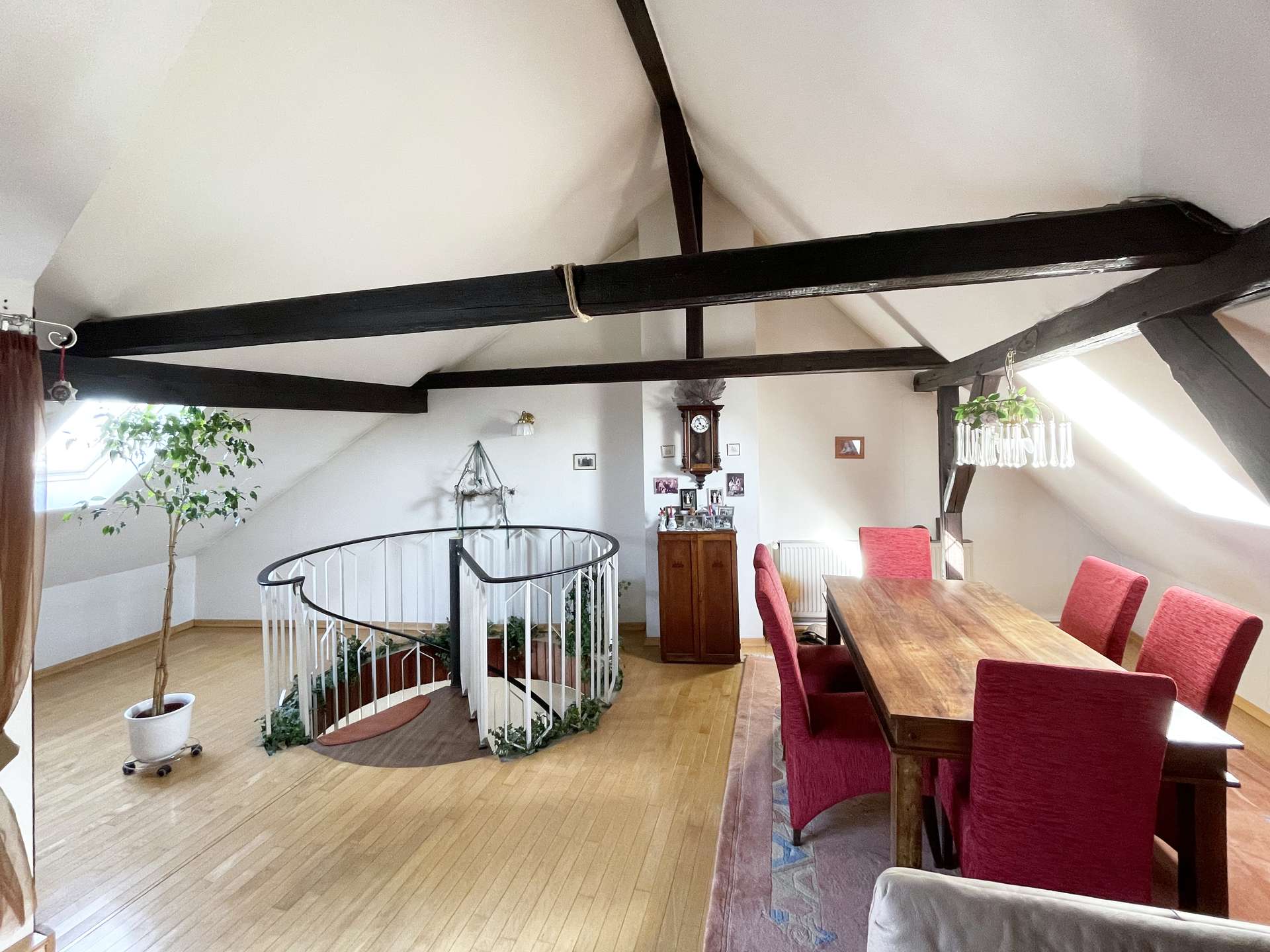 Im 4. und 5. Obergeschoss dieses wunderschönen Mehrfamilienhauses erwartet Sie auf 118 m² eine helle und charmant geschnittene 4-Zimmer-Maisonettewohnung. Im Wohn- und in den Schlafbereichen, ist der Boden mit Echtholzparkett ausgelegt. Die Kombination aus den Fensterfronten und den hohen Decken lässt viel Licht in die Räume und ergibt zusammen mit den Parkettböden ein klassisches, freundliches Wohnambiente. Der Flur und die Räume haben ein optimales Größenverhältnis zueinander. Das Elternschlafzimmer sowie das Kinderzimmer/Büro haben beide einen attraktiven Schnitt, sie können bequem Bett, Kleiderschrank und Kommoden unterbringen. Das Tageslichtbad hat eine angenehme Größe und bietet genügend Platz für die ganze Familie. Hier finden Sie nicht nur eine Dusche, sondern auch eine Badewanne und zwei Waschbecken vor. Die Küche bietet viel Platz, um morgens einen Kaffee zu trinken oder gemeinsam mit der Familie Erinnerungen zu kreieren. Von der Küche aus gelangen Sie über eine Wendeltreppe in die obere Etage, in der Sie ausreichend Platz geboten bekommen, um sich hier ein gemütliches Wohn- und Esszimmer einzurichten. Das Highlight des Wohnzimmers ist die freiliegende Balkenstruktur und die Dachterrasse mit Blick über die Skyline von Hannover.