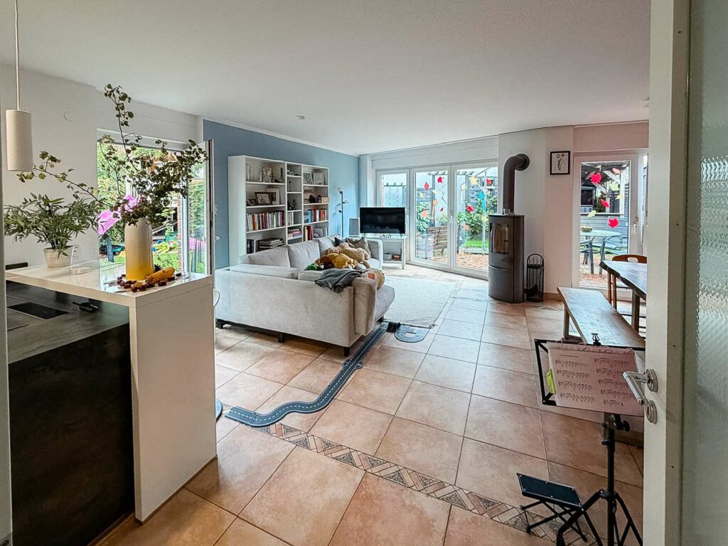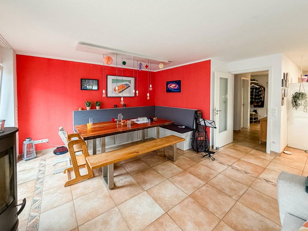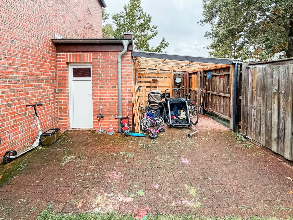 Ein Pkw-Stellplatz befindet sich direkt am Haus. Dort ist ein Wallbox-Anschluss vorbereitet, an den bei Bedarf eine eigene Ladestation angeschlossen werden kann. Besonders hervorzuheben ist die angenehme Nachbarschaft, die ein freundliches und respektvolles Miteinander pflegt, ein weiterer Pluspunkt dieser Immobilie.