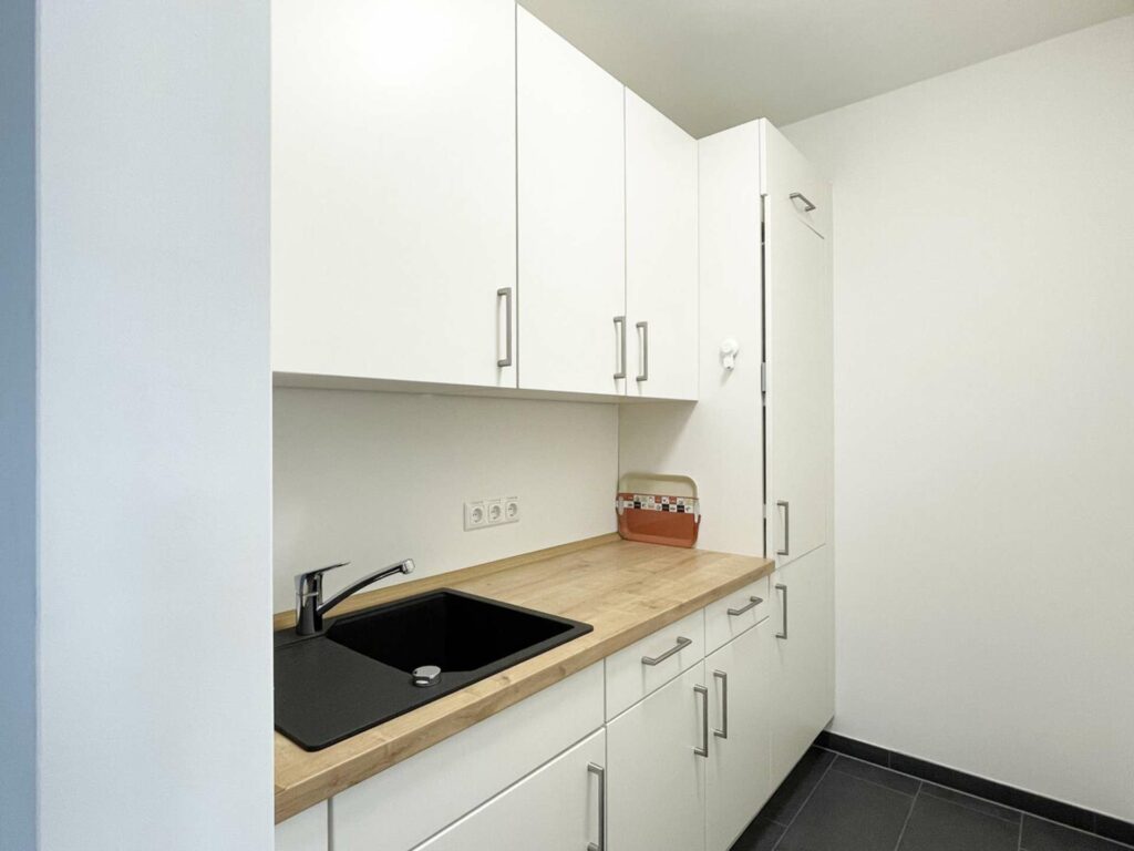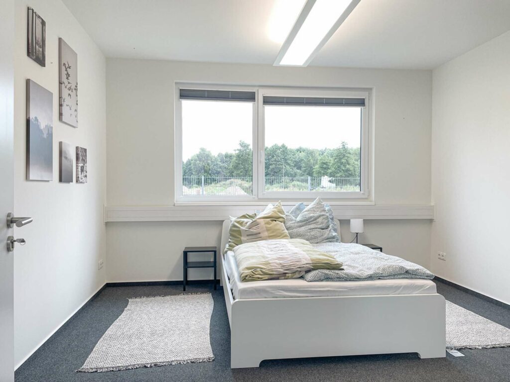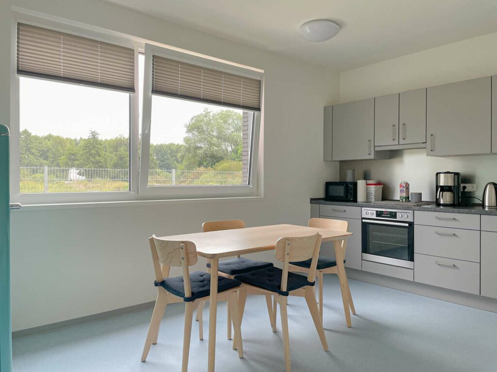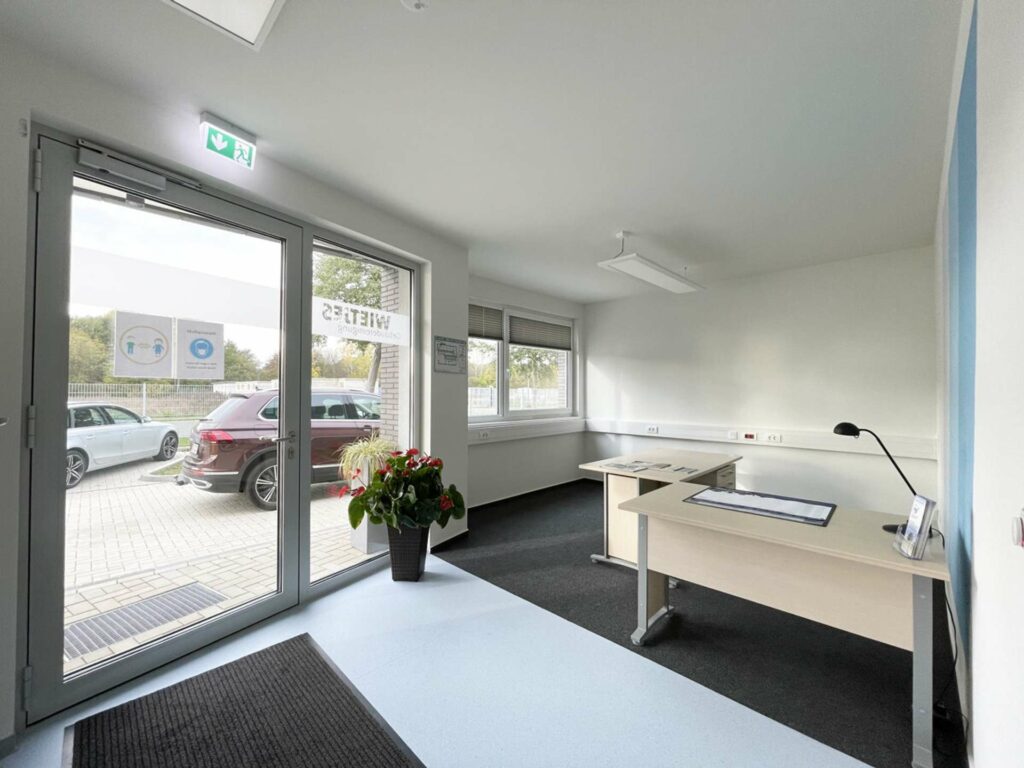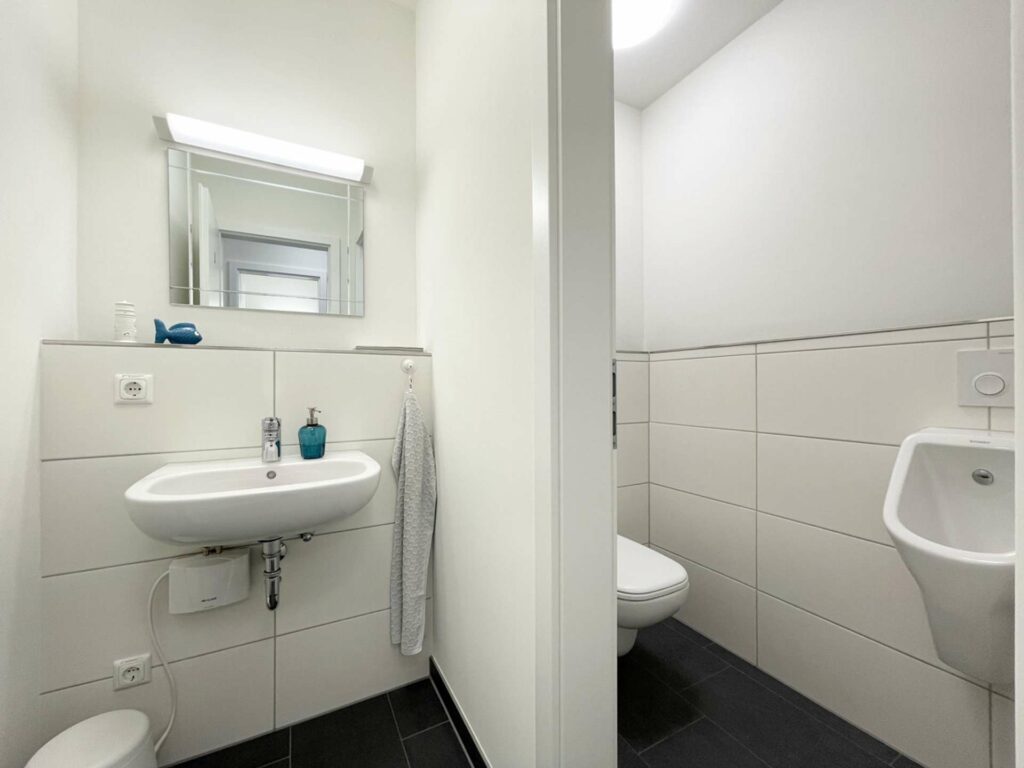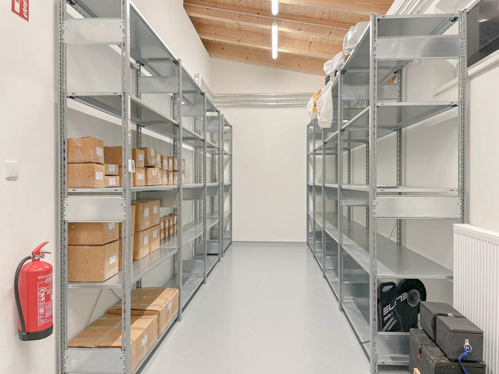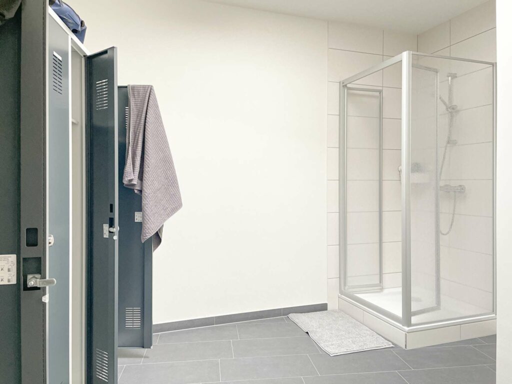 Zu den Büroräumen haben Sie im hinteren Bereich des Gebäudes einen geräumigen Pausenraum mit einer hochwertigen Küchenzeile, der Umkleideraum für die Mitarbeiter ist nur eine Tür weiter. Letzteres ist ausgestattet mit Toiletten und Waschraum inkl. Dusche. Darüber hinaus gibt es eine Teeküche direkt am Konferenzraum um die Wege zu verkürzen. Zusätzlich haben Sie einen separaten Serverraum. Durch die strategisch gut platzierten Oberlichter ist kein Bereich dunkel.